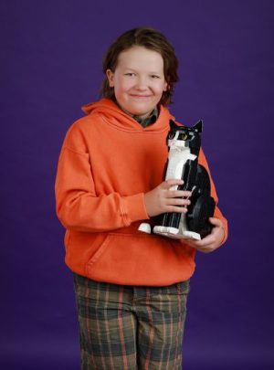 Favourite things: I love playing piano, building Lego, drawing, reading graphic novels, making paper airplanes, playing video games, riding my bike, playing Catch with my brother, going to the science centre and doing science experiments, making cookies with my grandma, and going golfing with my family. I love animals, especially cuddling my two cats, Gary and Bingo, and axolotl, Floppy. I love interesting facts (but not math facts!) and funny jokes. I love playing with my friends and laughing with them.