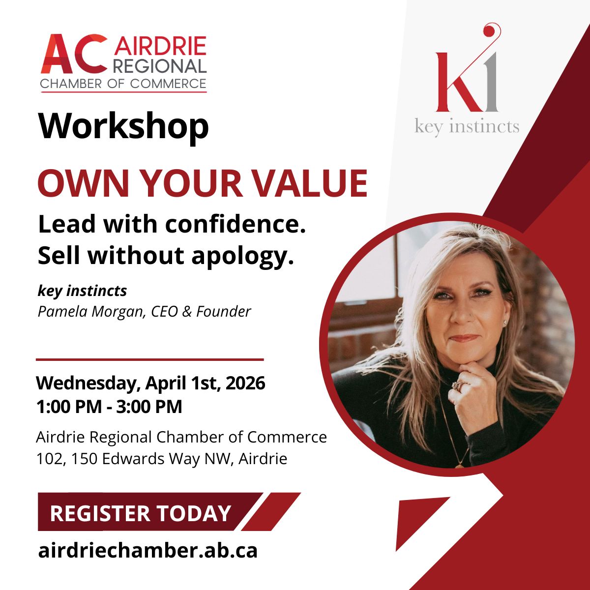 WORKSHOP: Own Your Value – Lead with Confidence. Sell without apology. Apr 1 1:00 pm - 3:00 pm WORKSHOP: Own Your Value – Lead with Confidence. Sell without apology.
