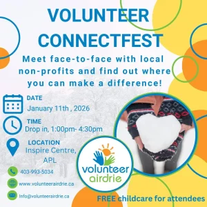 Whether you’re new to volunteering or looking for a fresh way to get involved, ConnectFest offers a warm, practical entry point into community connection, right in the heart of Airdrie. Learn more at volunteerairdrie.ca.