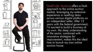 Why entrepreneurship? It’s invigorating — the challenge, the creativity, the ability to build something meaningful. Auctions embody that same excitement, offering endless possibilities with every bid. Marketplace selling can be risky and unreliable, but DealFinder Auctions provides a secure and effortless way for sellers to turn items into cash while ensuring valuable goods find new homes. My mission is to create a streamlined, trustworthy auction experience that benefits both buyers and sellers, alike.